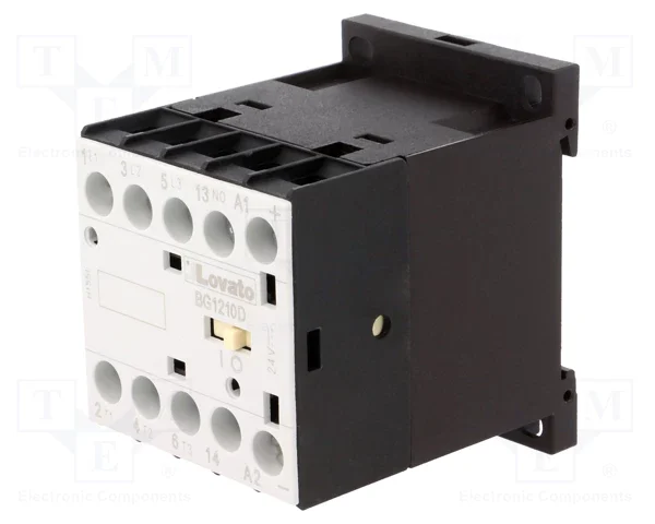 LOVATO Electric 11BG1210D024 Three-Pole Contactor, IEC 12A, DC Coil, 24V DC, 1NO Aux Contact