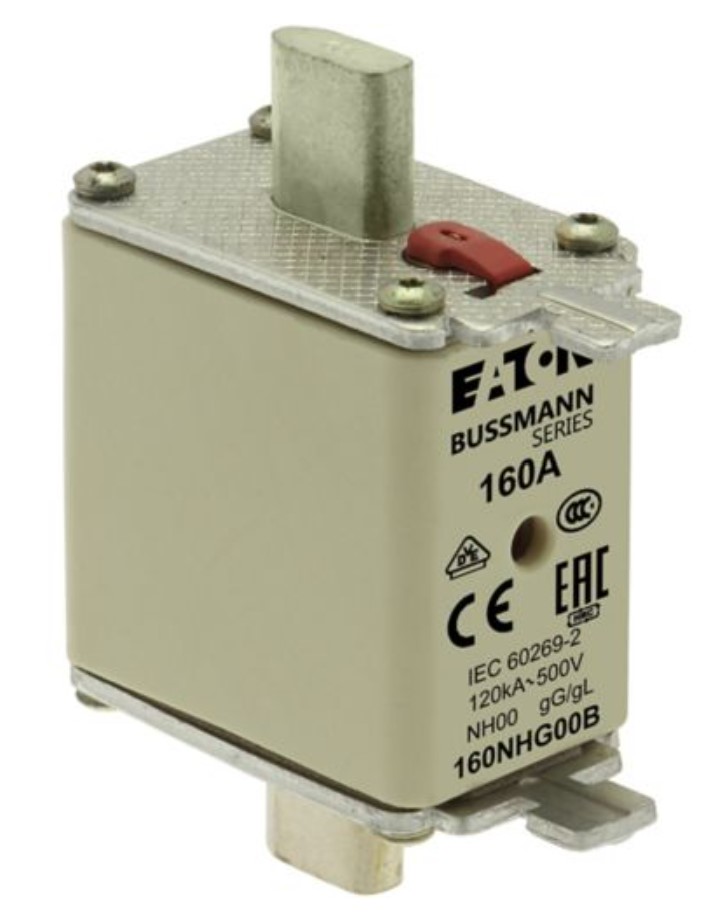 Bussmann – 160NHG00B NH FUSE, 160A, 500V, GG/GL, SIZE 00, FUSE-LINK, LV, IEC, DUAL INDICATOR, LIVE GRIPPING LUGS