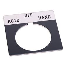 Allen Bradley Legend Plate, Emergency Stop, Red Field, 30 mm.