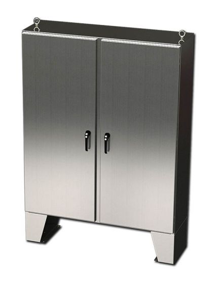 Saginaw Enviroline series enclosure, NEMA 3R/4/4X/12/13, 60 x 48 x 18in (HxWxD), floor mount, 304 stainless steel, #4 brush finish, double-door, 3-point