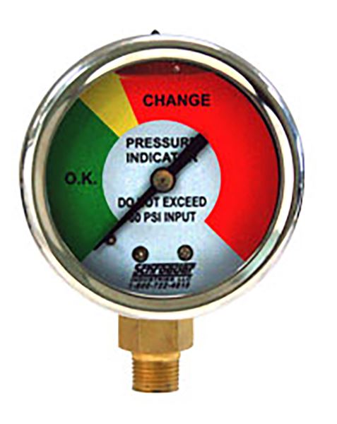 Schroeder industries Back Mounted Tri-Color Gauge, Y2, 25 PSI, 0.12 NPT, 2 Dia, Glycerin-Filled with Bushing, Male x Female Pipe, 04MP-02FP.